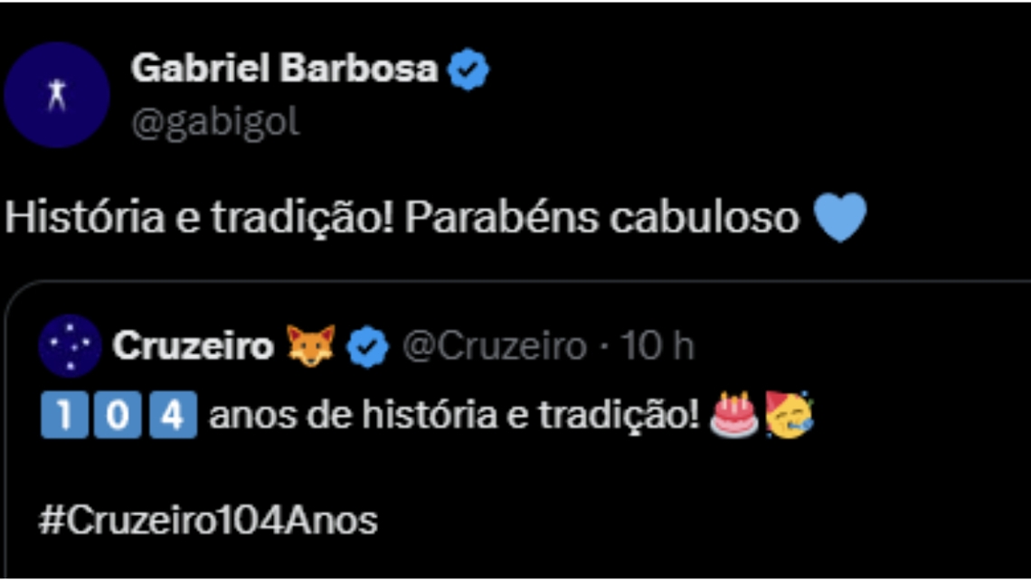 Gabigol parabeniza Cruzeiro em seus 104 anos: “História e tradição”