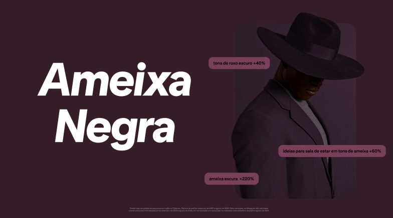 Para quem busca impacto visual, o Ameixa Negra surge como uma das cores mais marcantes do ano. Profundo e dramático, o tom mistura roxo escuro, bordô e nuances terrosas, sendo associado a ambientes sofisticados e produções de moda com personalidade.