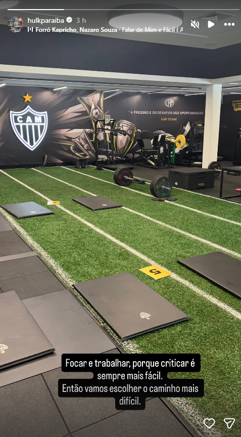 O “super-herói” atleticano publicou uma foto na nova academia da Cidade do Galo e disse: “focar e trabalhar, porque criticar é sempre mais fácil. Então, vamos escolher o caminho mais difícil.”