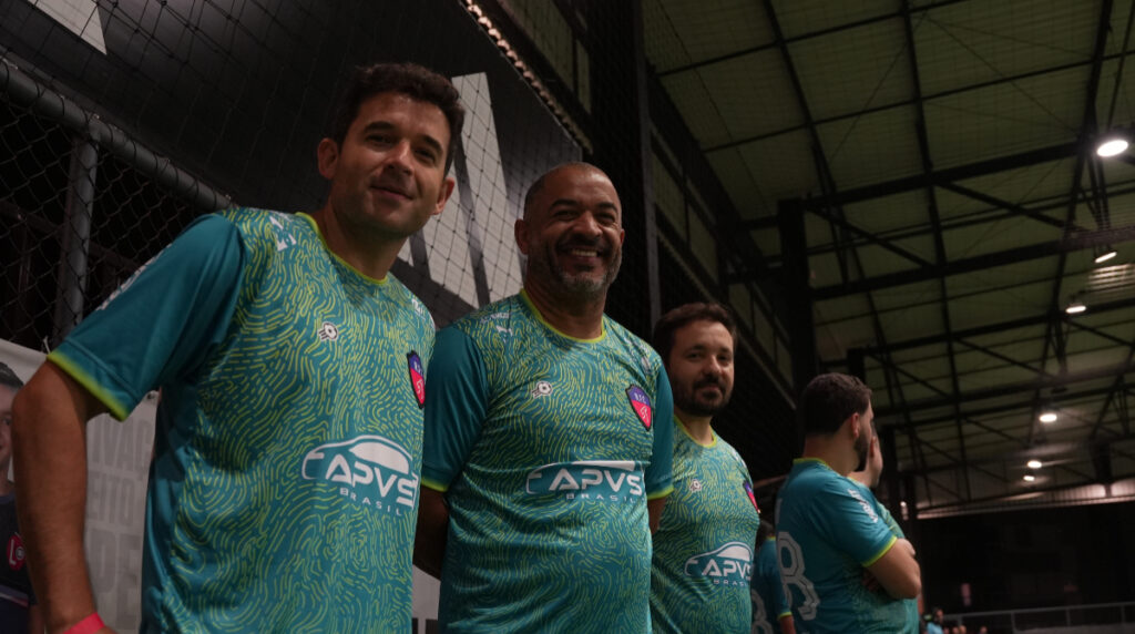 A segunda partida do dia foi marcada por uma “chuva de gols” — mas apenas de um lado. Em um jogo de confraternização entre a equipe da casa e os parceiros, os meninos da APVS não tomaram conhecimento dos meninos da 98 e aplicaram uma goleada histórica de 12 a 0. Apesar do placar elástico, o clima foi de diversão total.