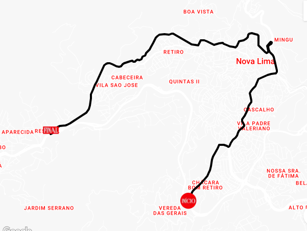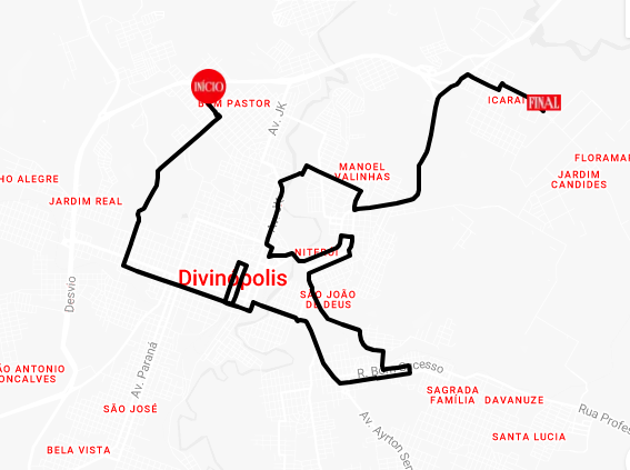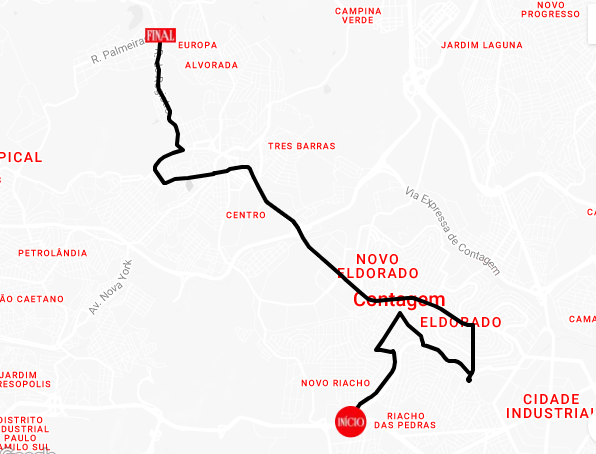 Endereço: Trajeto com início e término na Siderúrgica Itabirito, no bairro Esperança (Avenida Queirós Jr., 3575).