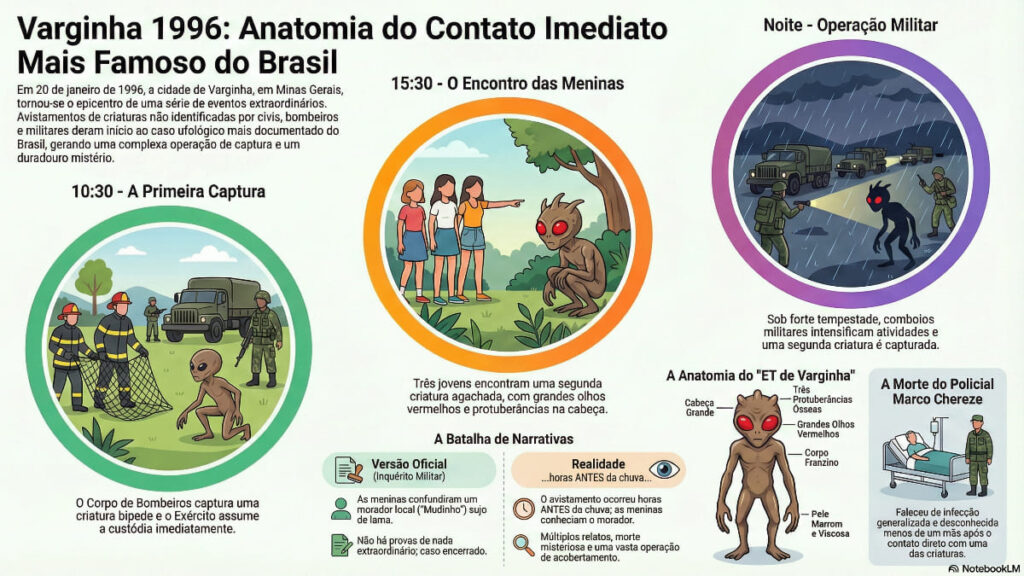 Em 20 de janeiro de 1996, o Brasil parou. Não por causa do futebol ou da política, mas devido a um relato vindo do Sul de Minas Gerais. O Caso Varginha completa 30 anos em 2026, consolidado não apenas como uma lenda urbana, mas como o incidente ufológico mais complexo, documentado e controverso do hemisfério sul.