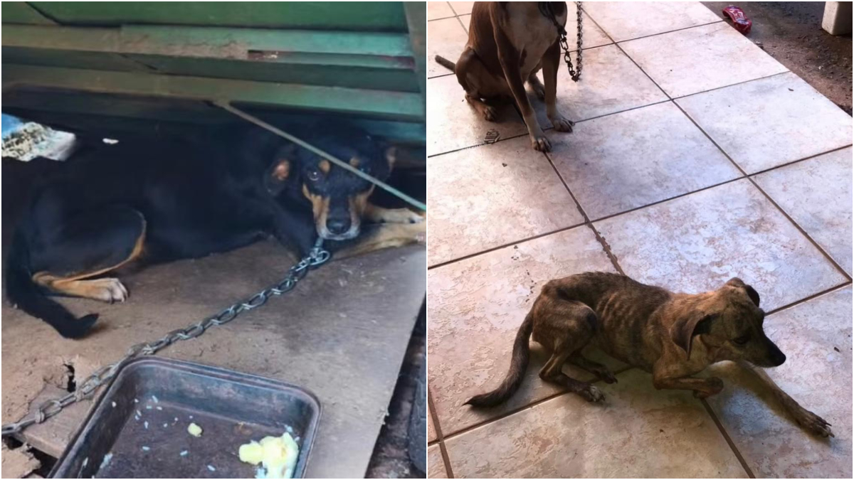 Homem é preso após cães serem encontrados acorrentados e ave silvestre em cativeiro em MG