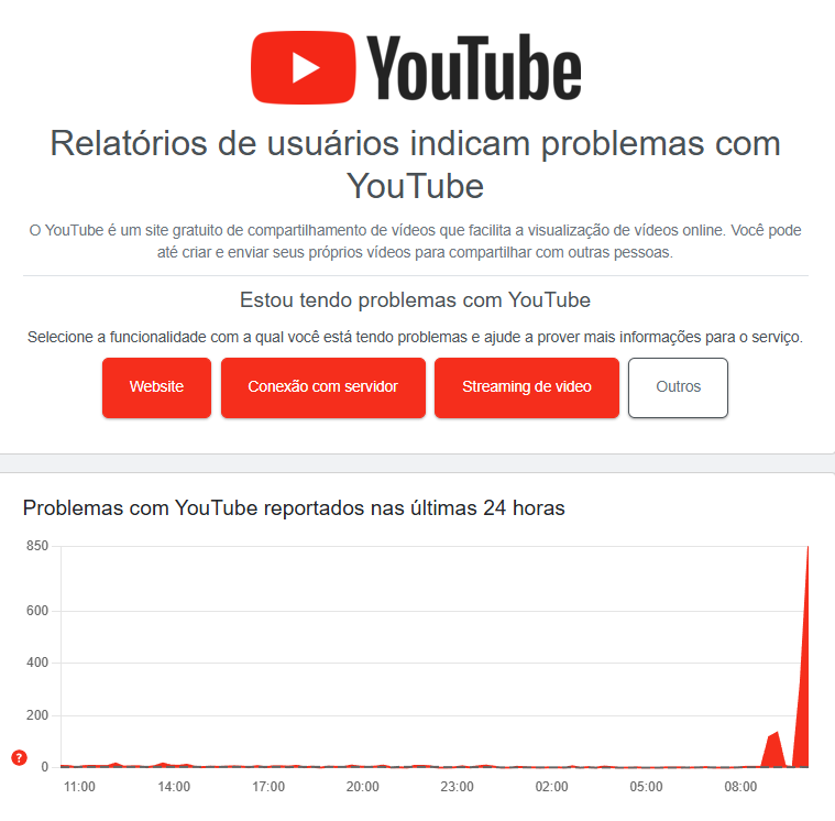 De acordo com o DownDetector, site que monitora o funcionamento de serviços online a partir de relatos de usuários, os problemas atingiram um pico às 10h09. Entre as falhas mais notificadas, 53% dos usuários relataram dificuldades de acesso ao site, 37% apontaram problemas de conexão com o servidor e 10% mencionaram falhas no streaming de vídeos.