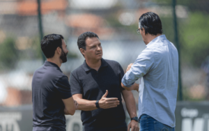 Na véspera da decisão, Paulo Bracks, Pedro Daniel e Rafael Menin acompanham treino do Atlético