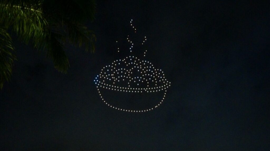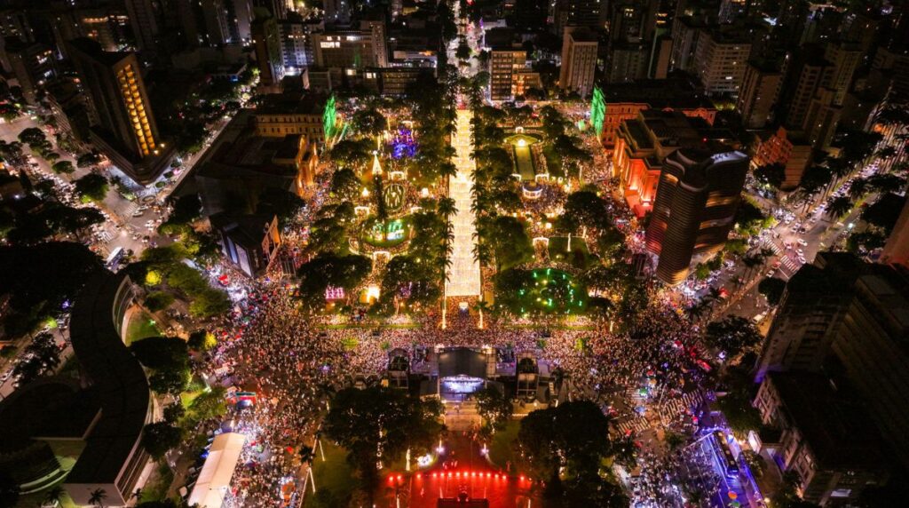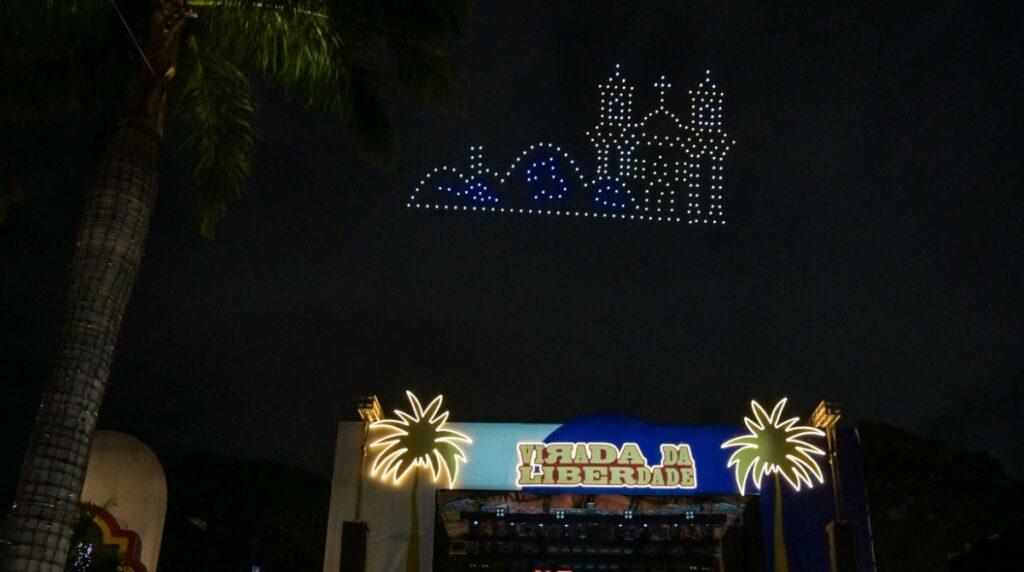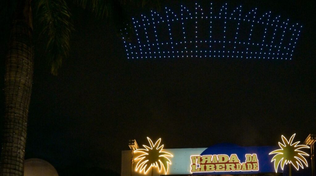 Próximo à meia-noite, cerca de 300 drones iluminaram o céu da capital para recepcionar a chegada de 2026. As projeções aéreas desenharam ícones ligados à cultura mineira, como o pão de queijo, o trem e o Estádio Mineirão. A apresentação também prestou homenagem a Lô Borges, um dos criadores do Clube da Esquina, que morreu em novembro.