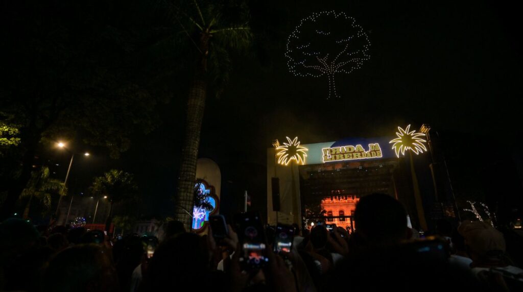 Ainda antes das 18h desta quarta-feira (31/12), o público já se reunia na Praça da Liberdade, na região Centro-Sul de Belo Horizonte, para dar as boas-vindas ao Ano Novo. Ao longo da celebração, milhares de pessoas passaram pelo local para acompanhar a programação da Virada da Liberdade 2026, que contou com show de drones, espetáculo de fogos, apresentações musicais e uma homenagem ao cantor Lô Borges.